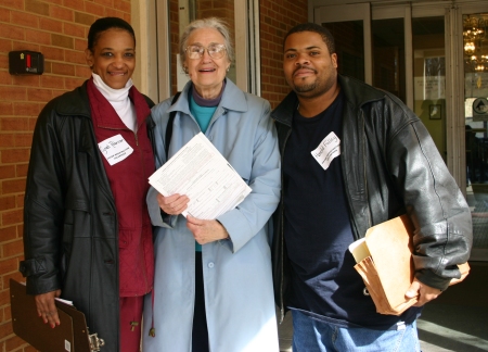 Cyndi Richardson, Jane Foster and Harold Folley Help Register Residents to Vote, Crescent Halls, February 27, 2004